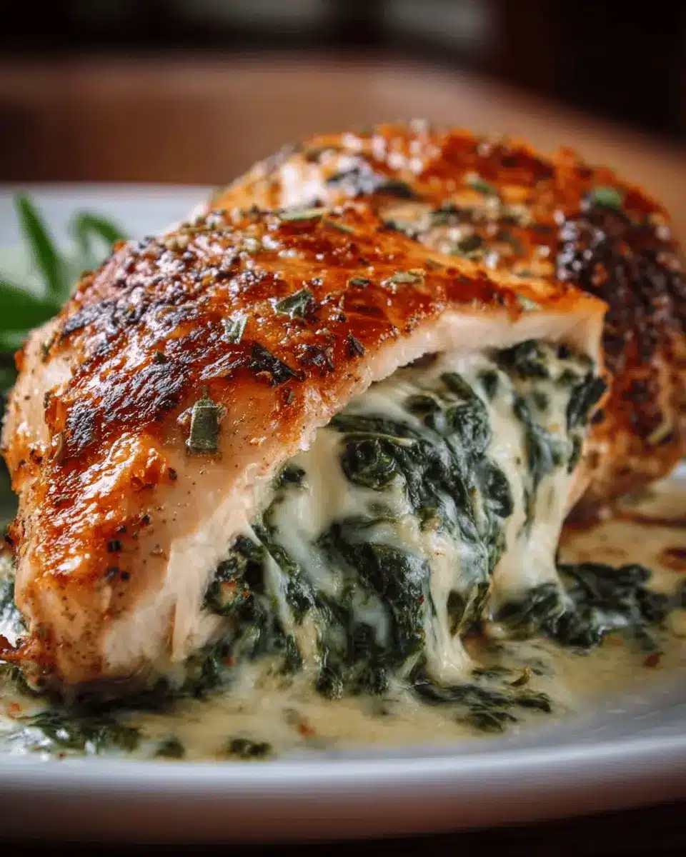 - Consejo de presentación: Sirve el pollo rellena con espinaca y queso en un plato con una guarnición de ensalada o verduras asadas para una cena equilibrada y colorida.