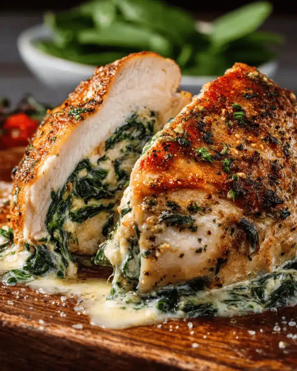Esta receta de pollo rellena con espinaca y queso es fácil de preparar y está llena de sabor. Perfecta para una cena rápida.