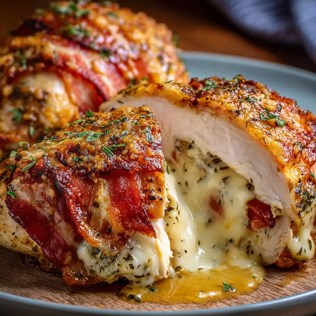 Disfruta de este delicioso pollo relleno de jamón y queso, una receta fácil que encantará a todos en casa.