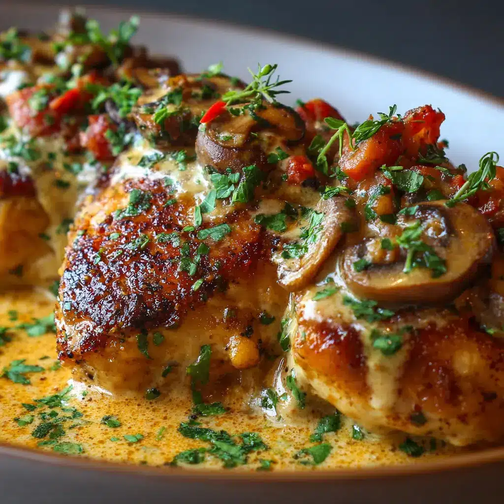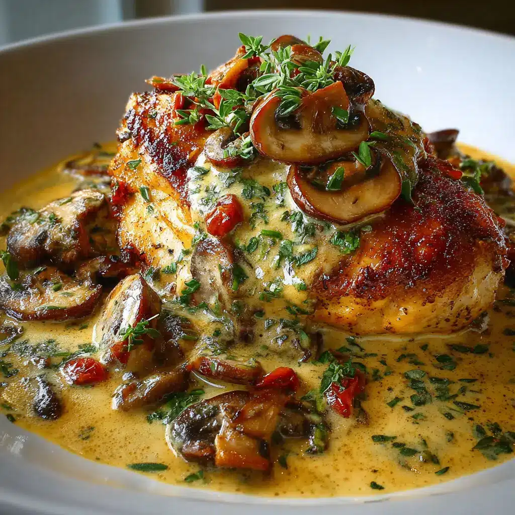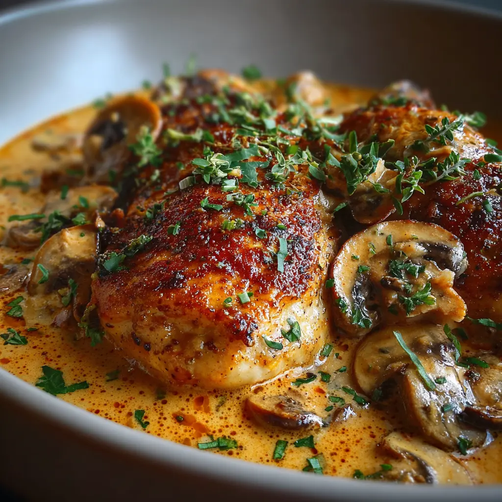 Disfruta de un delicioso pollo sellado acompañado de una suave y rica salsa cremosa de champiñones. Perfecto para una cena especial o un almuerzo rápido.