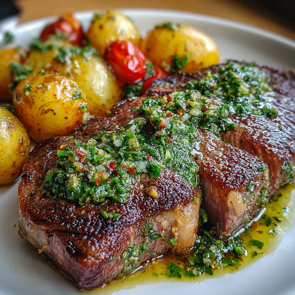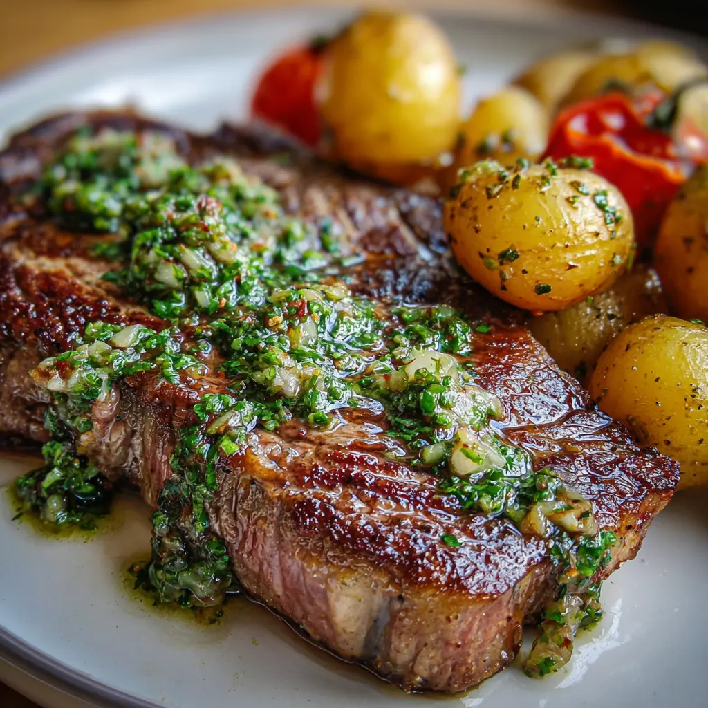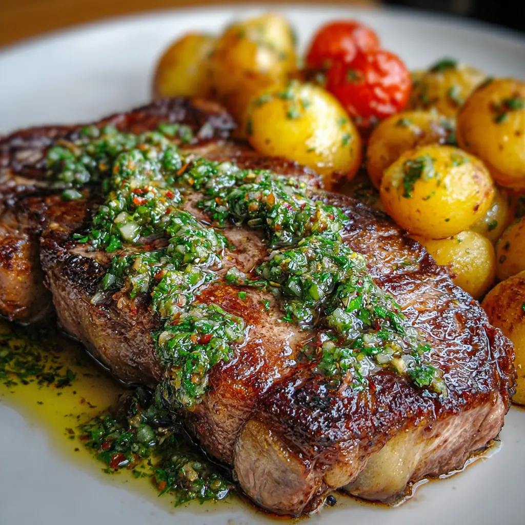 Ribeye con salsa verde y papas: una receta jugosa para disfrutar