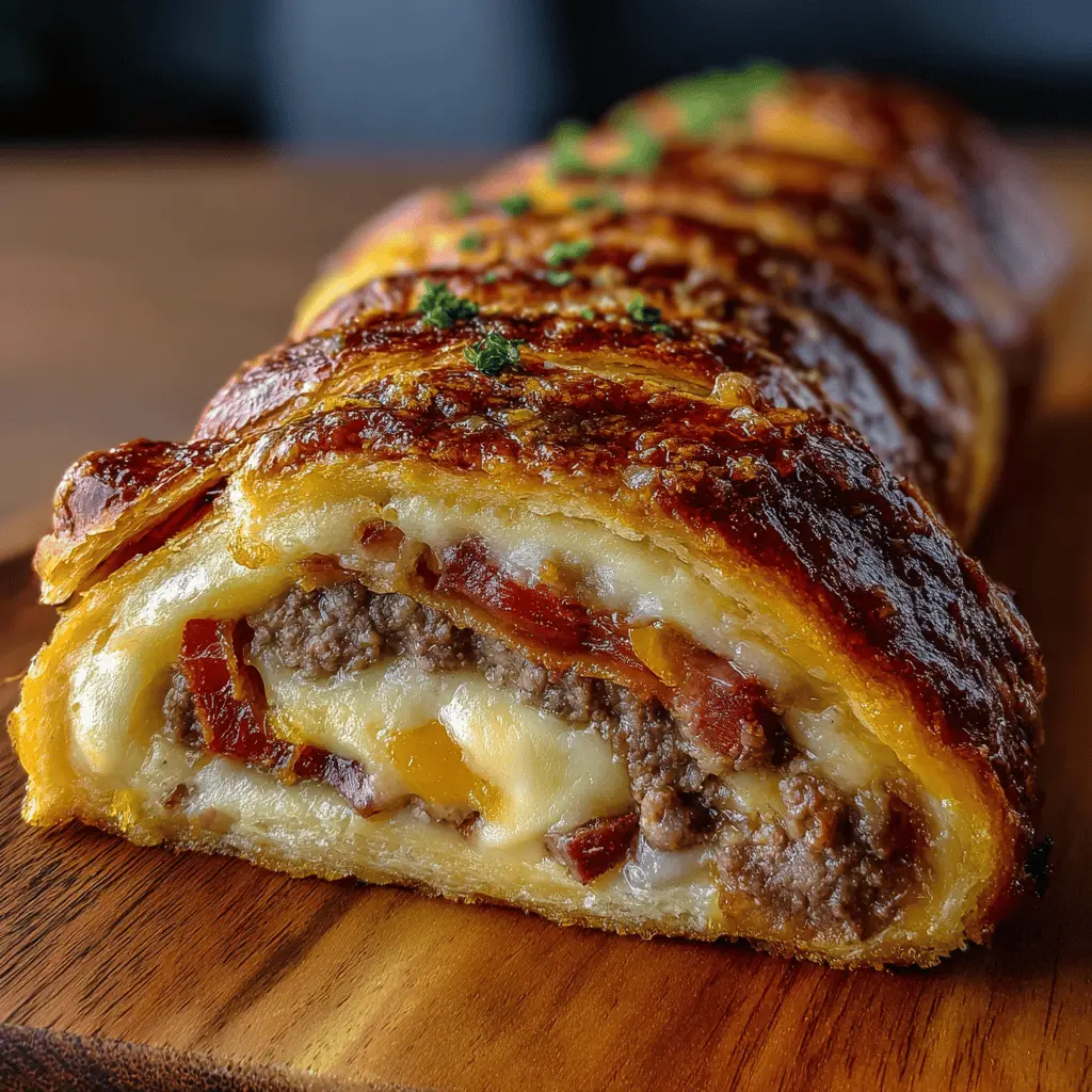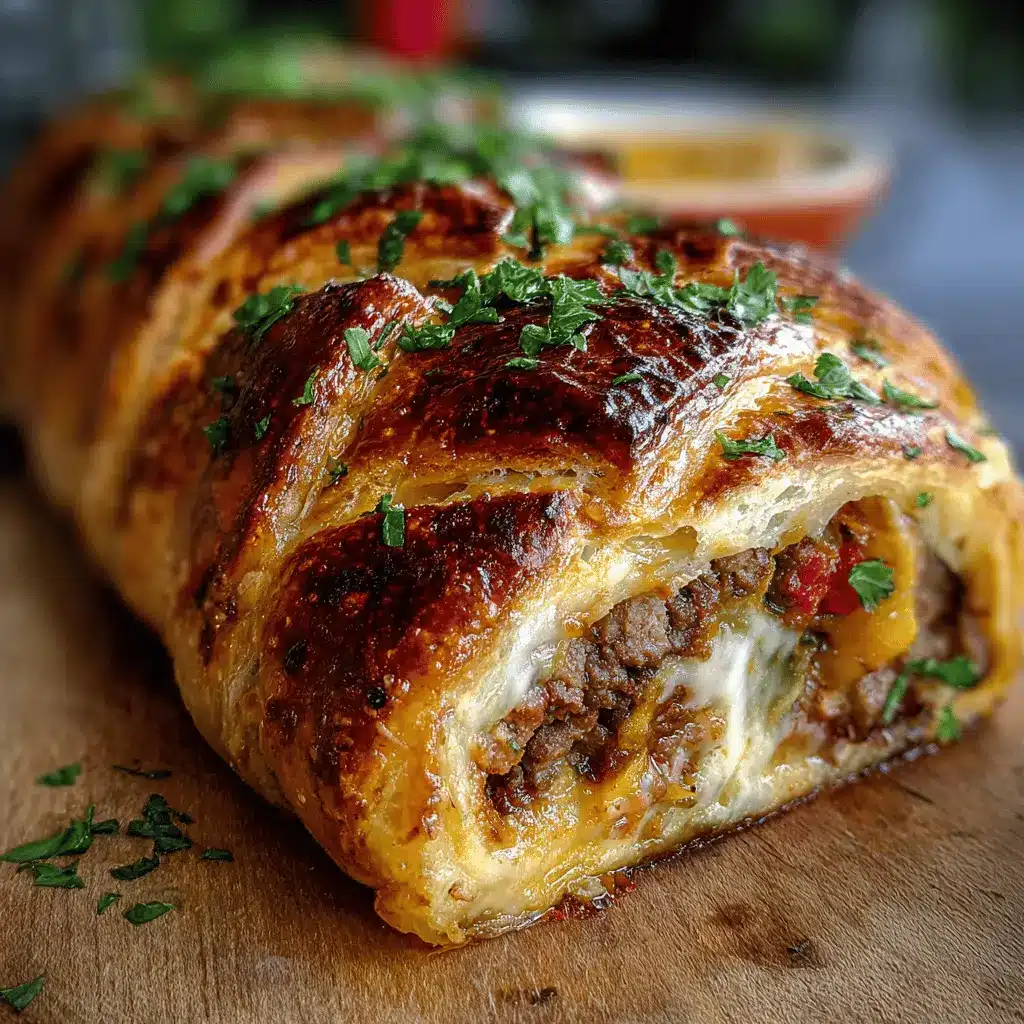 Un delicioso rollo de pan relleno de res que es ideal para compartir en familia o con amigos. Fácil de preparar y lleno de sabor.