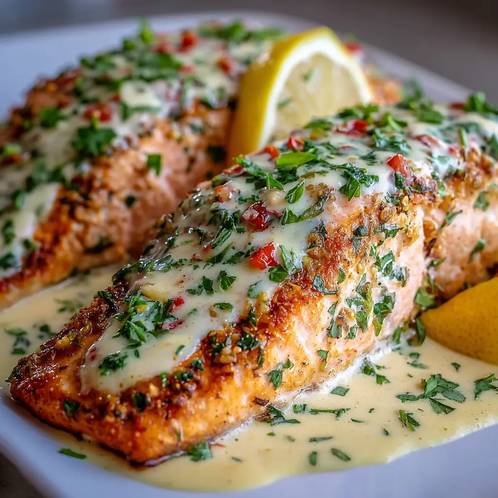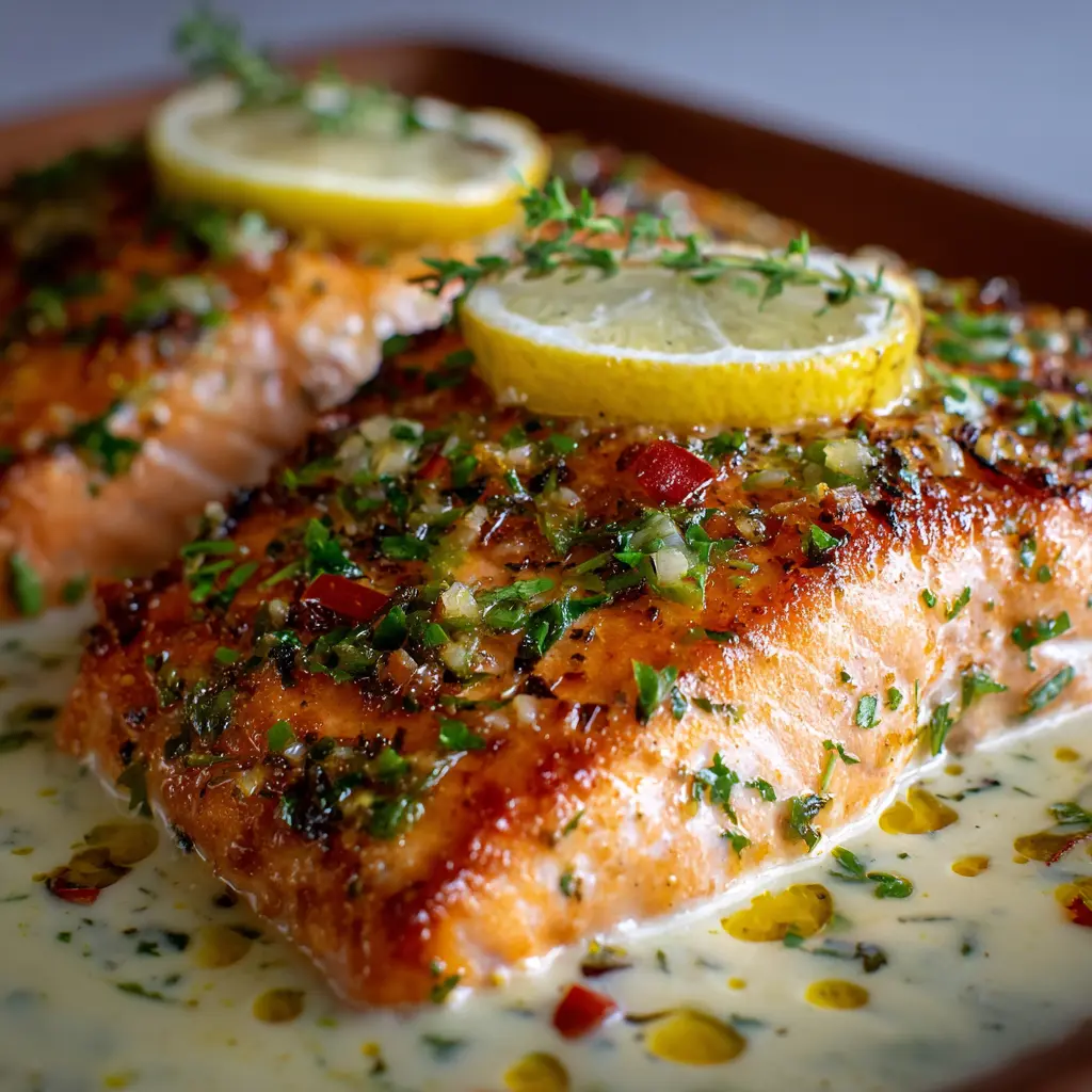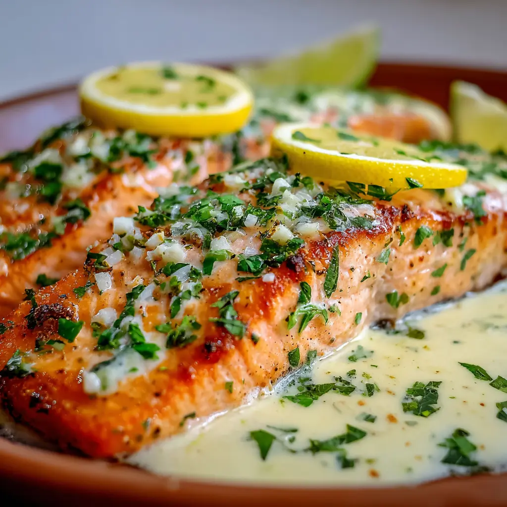 Salmón al horno con salsa cremosa de limón y ajo: ¡delicioso y fácil!
