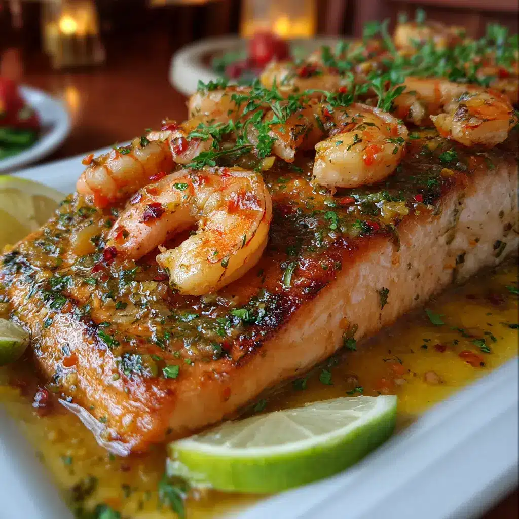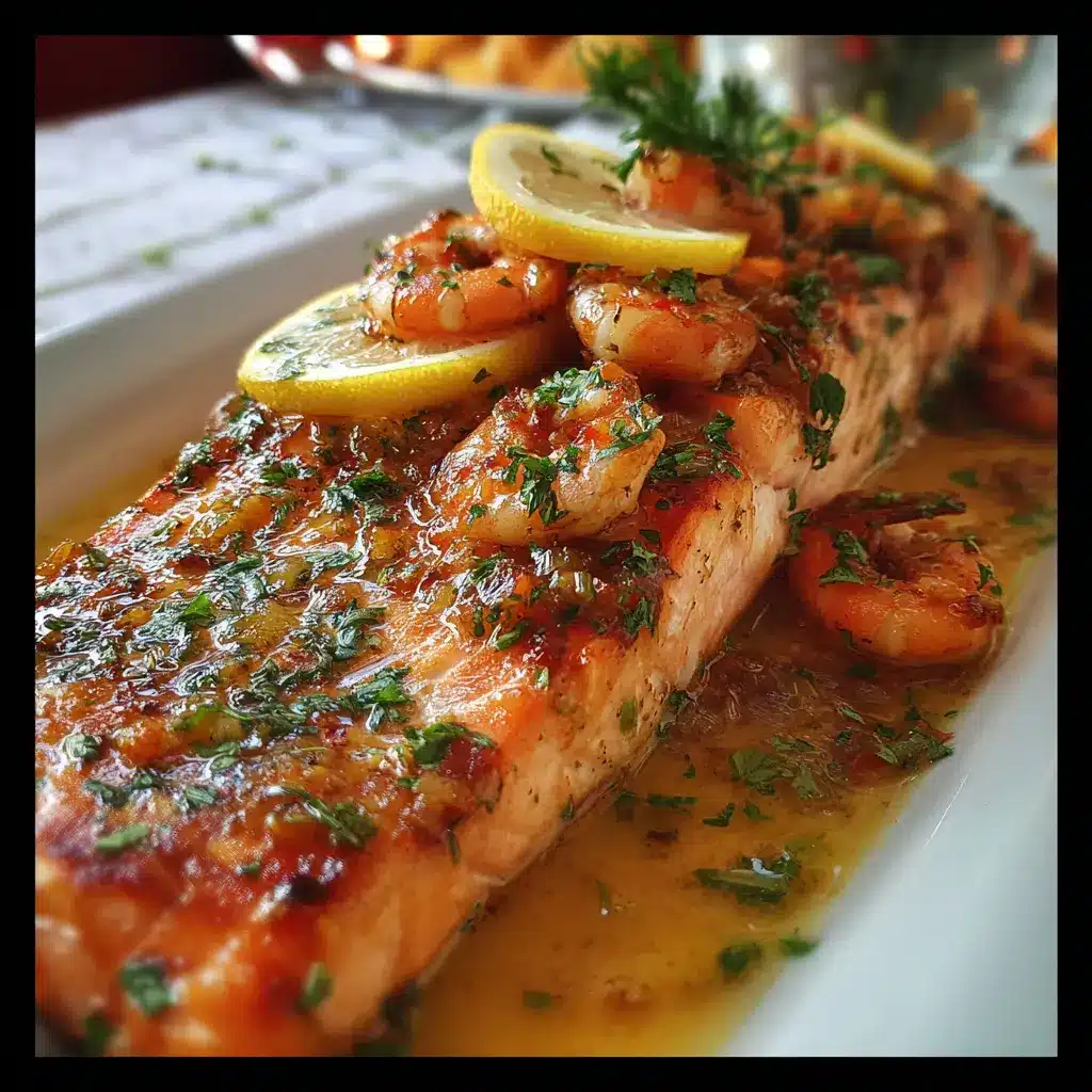 Variaciones de Salmón al Horno con Salsa de Limón y Camarones