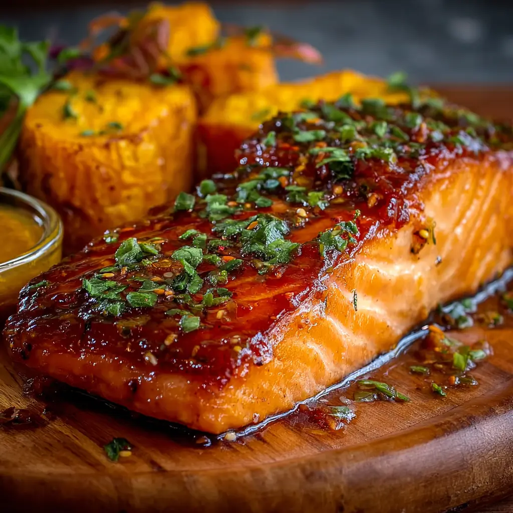 Salmón glaseado con miel y mostaza: Deliciosa batata asada fácil