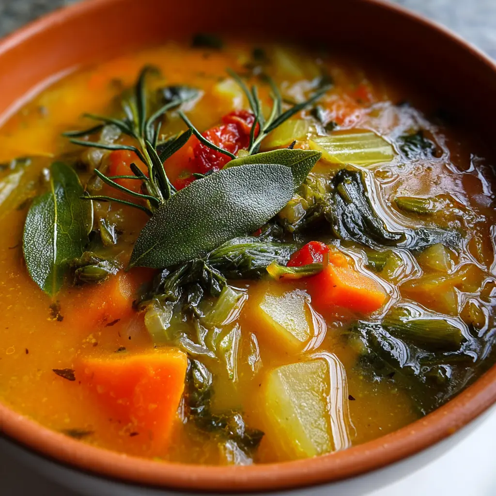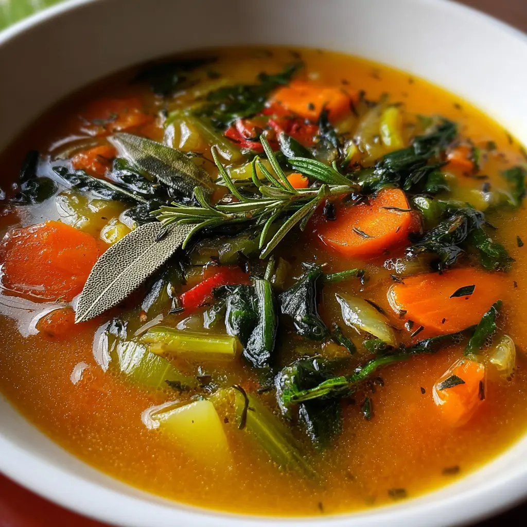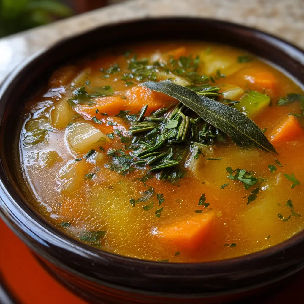 Sopa de verduras con tomillo y laurel sin sal, reconfortante y fácil