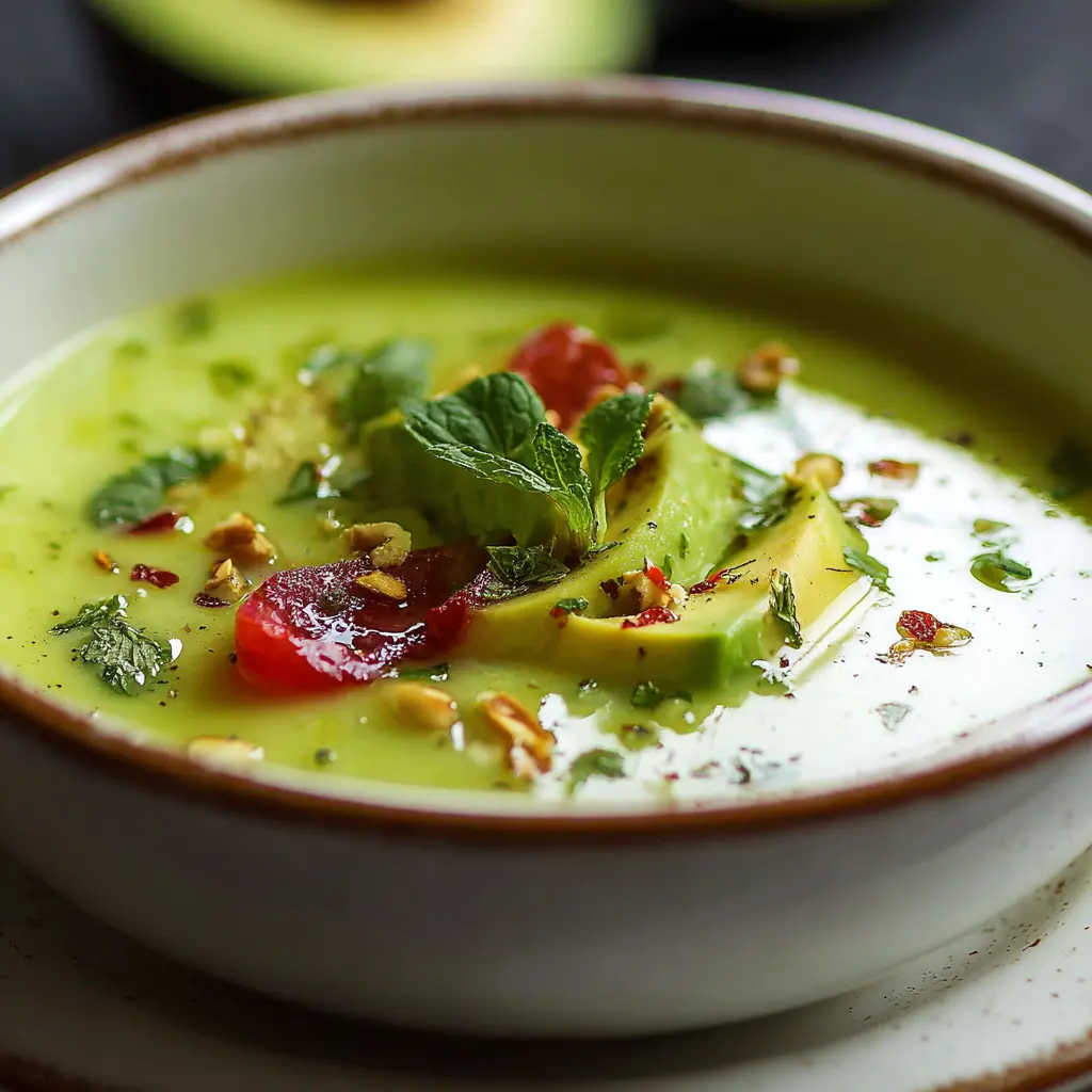Sopa fría de palta con menta
