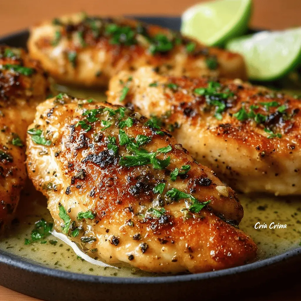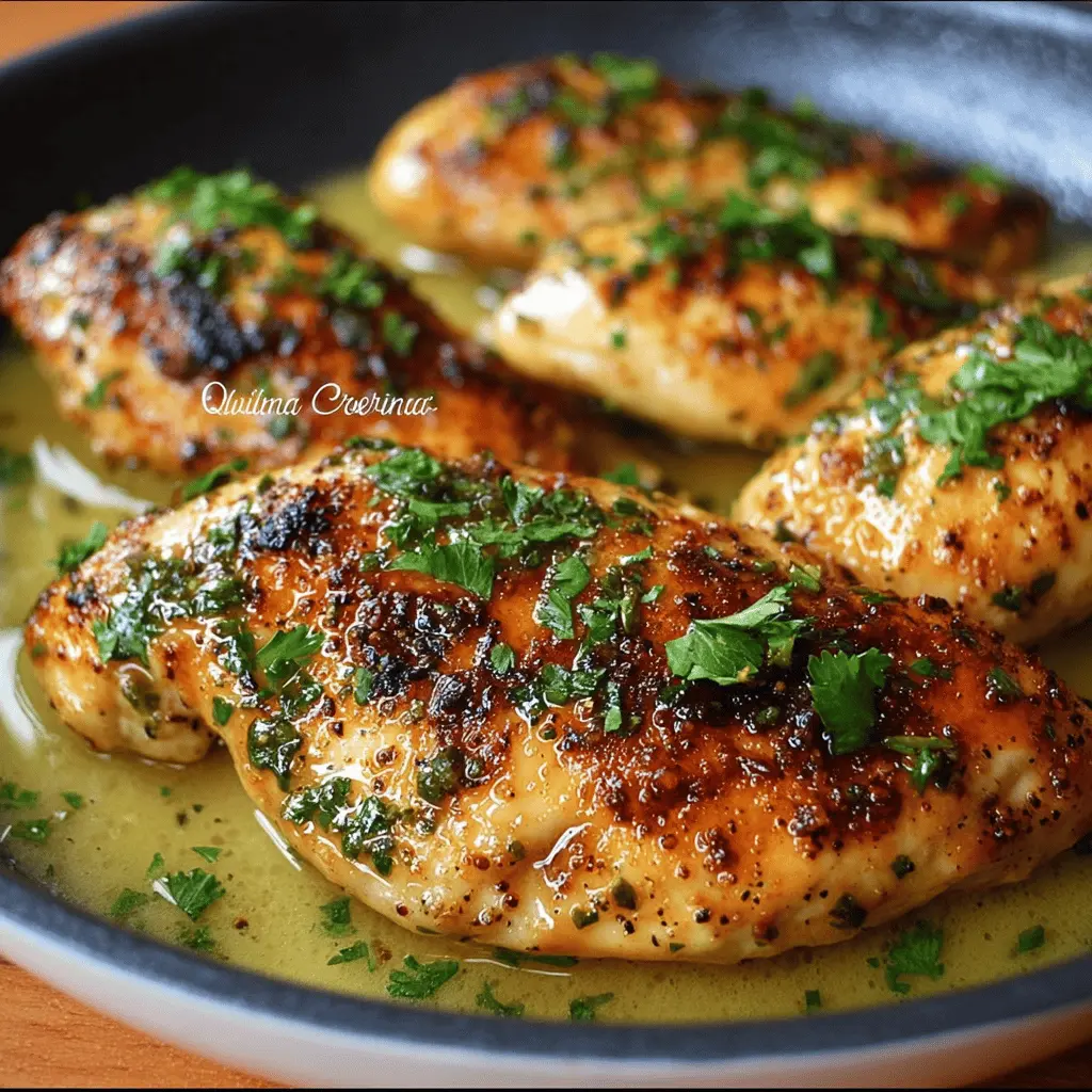 Disfruta de estas tiras de pollo a la mantequilla con un toque fresco de limón y perejil. Una receta fácil y deliciosa que encantará a todos.