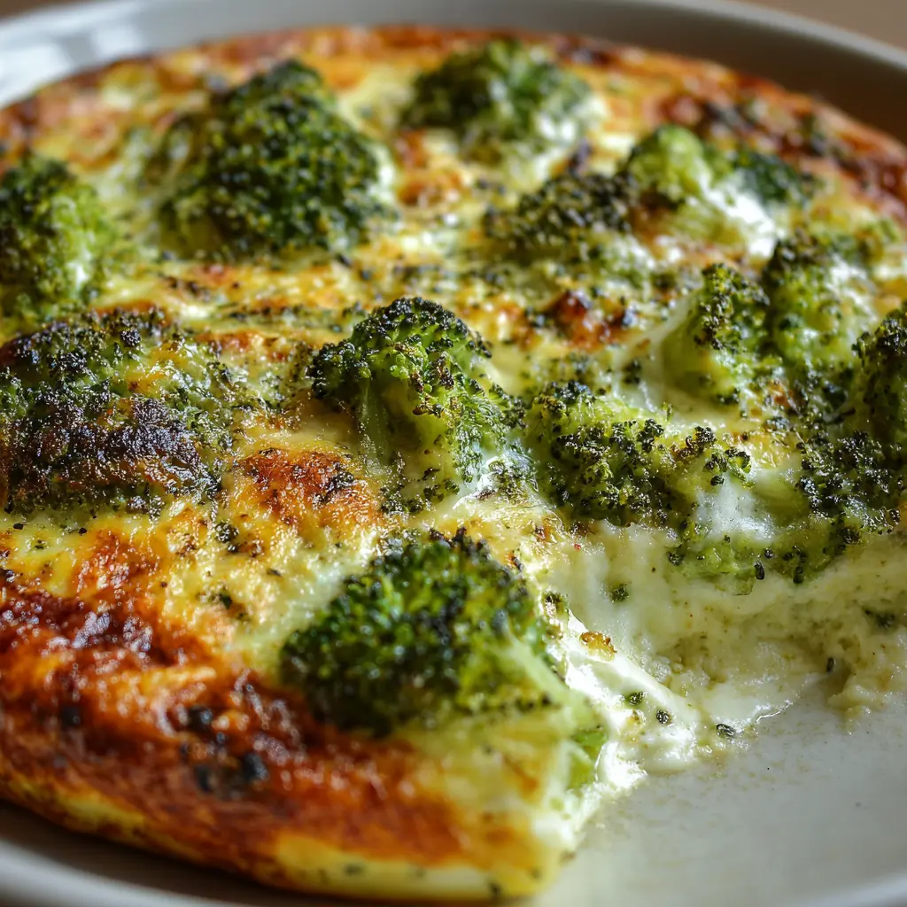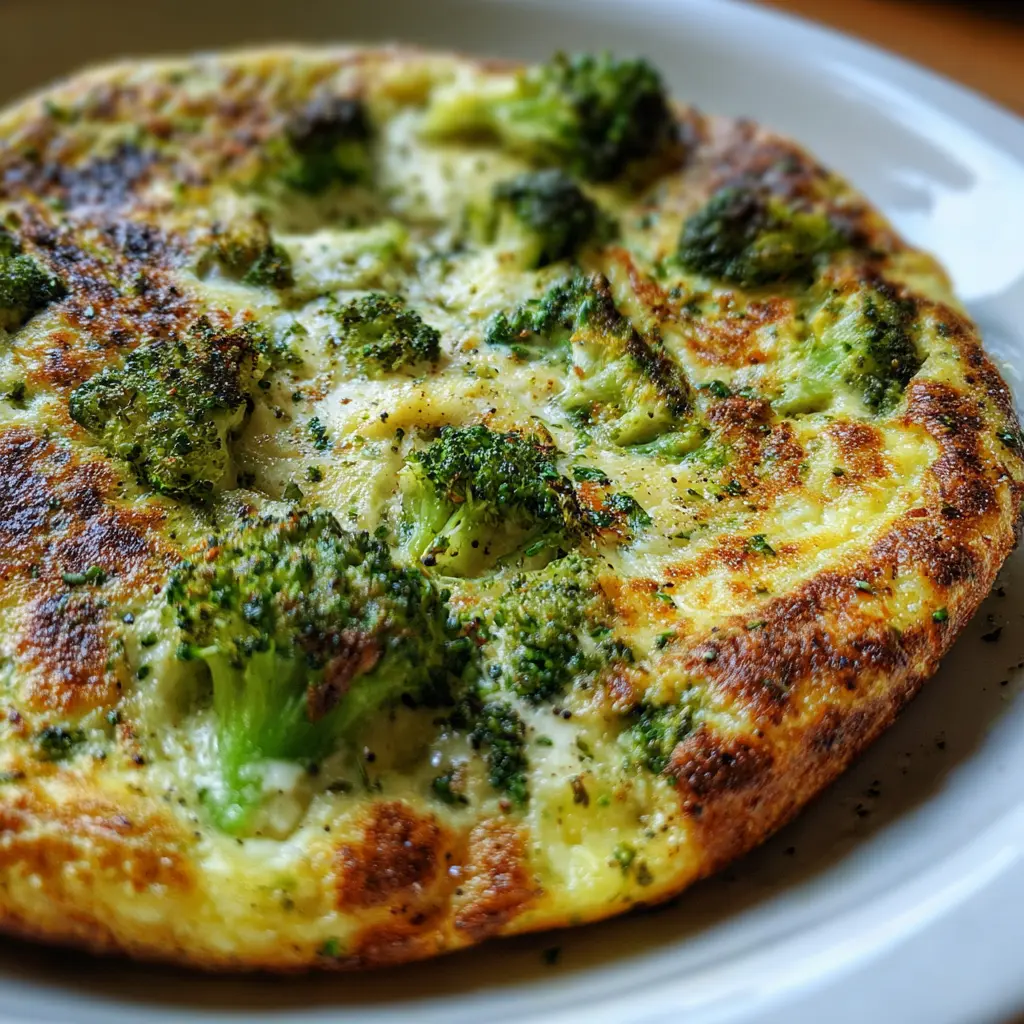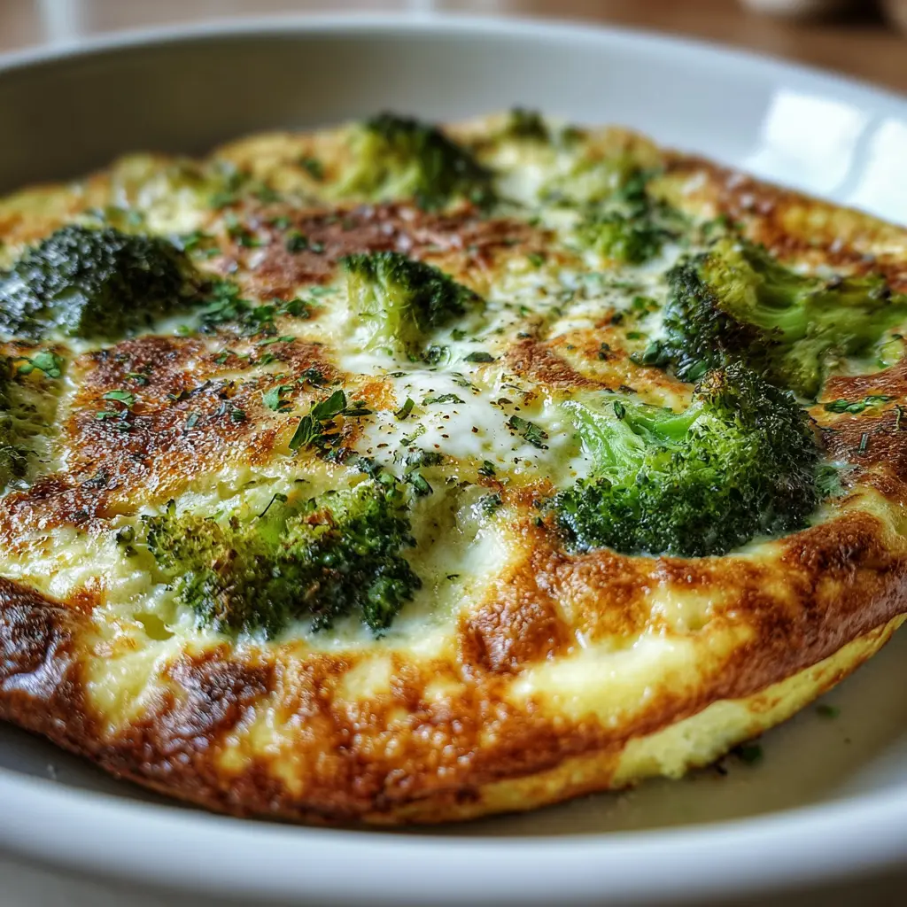 Una deliciosa tortilla al horno hecha con claras de huevo, brócoli fresco y cremoso ricota, perfecta para una comida ligera o un desayuno nutritivo.