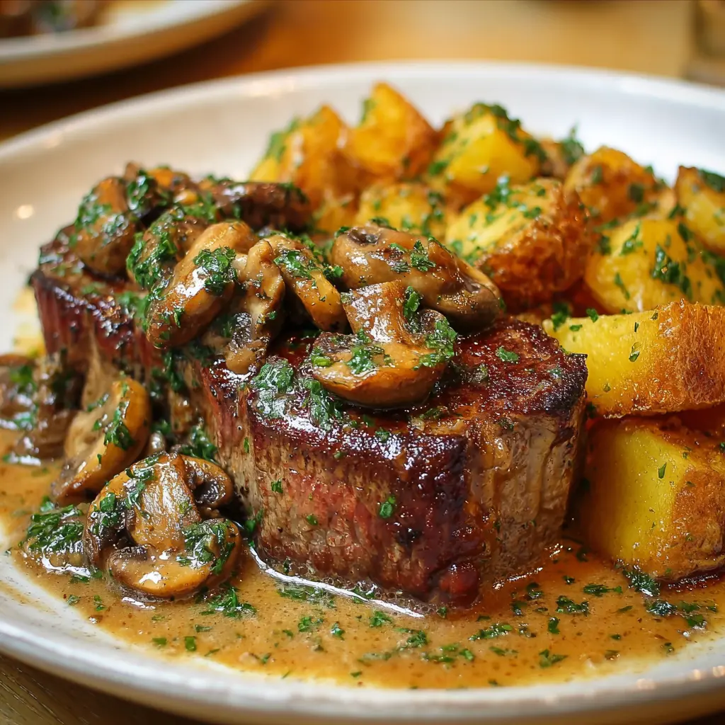 Tournedo de lomo y hongos: delicioso con papas crocantes