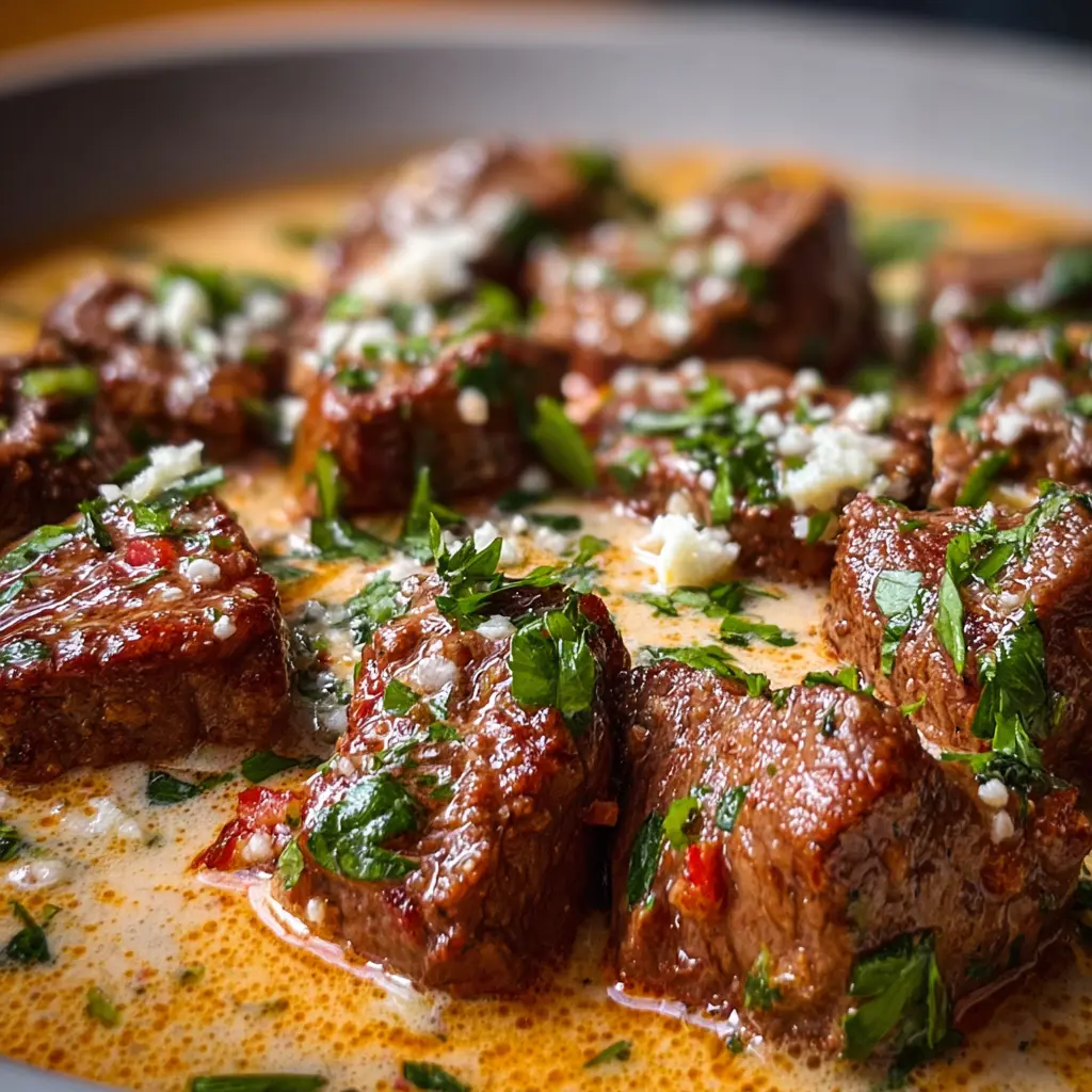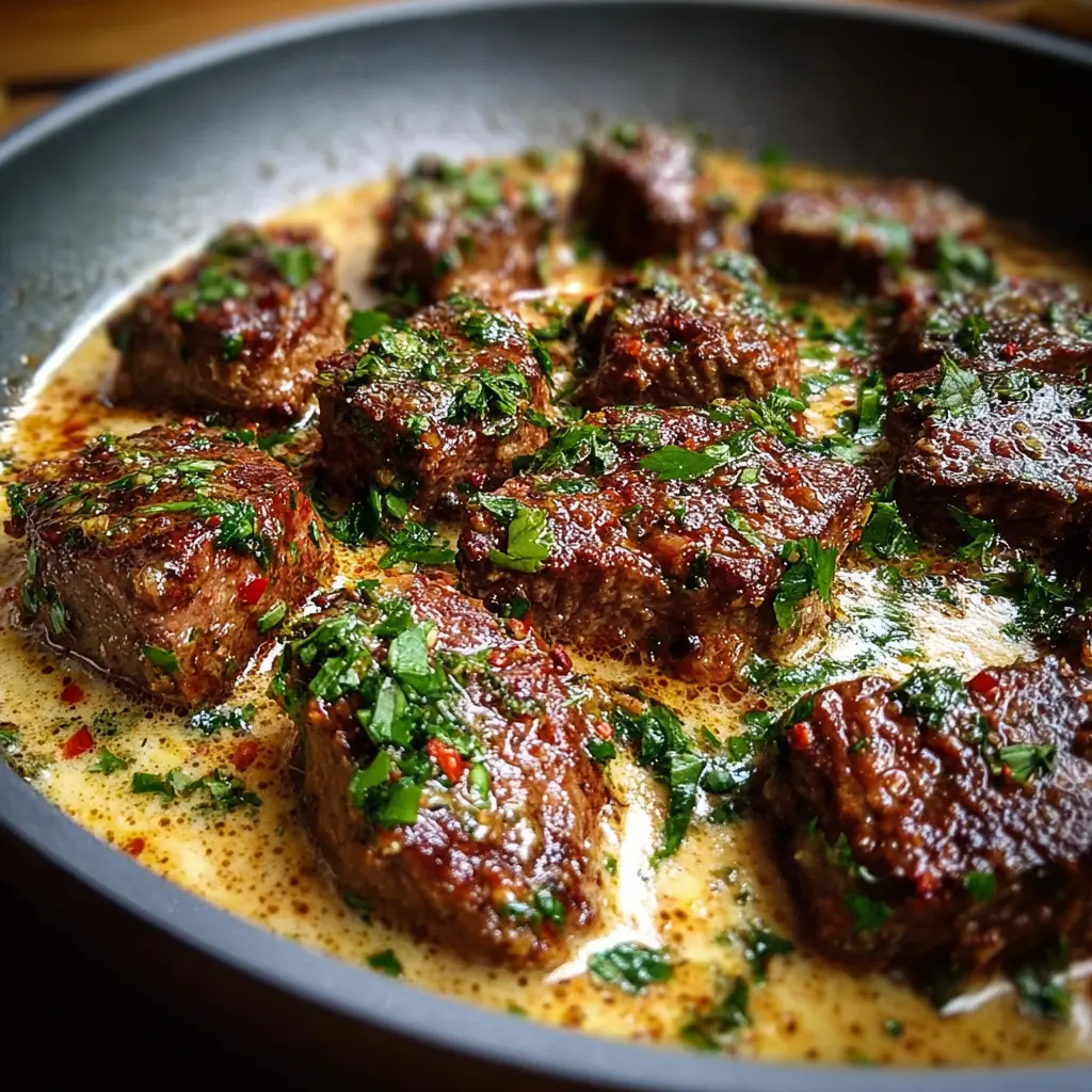 Variaciones de los Trocitos de Carne en Salsa de Mantequilla de Ajo con Crema de Parmesano