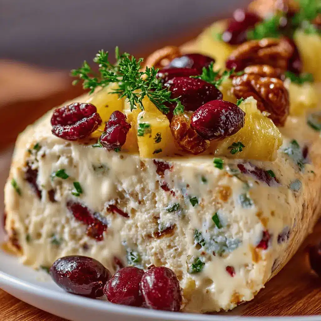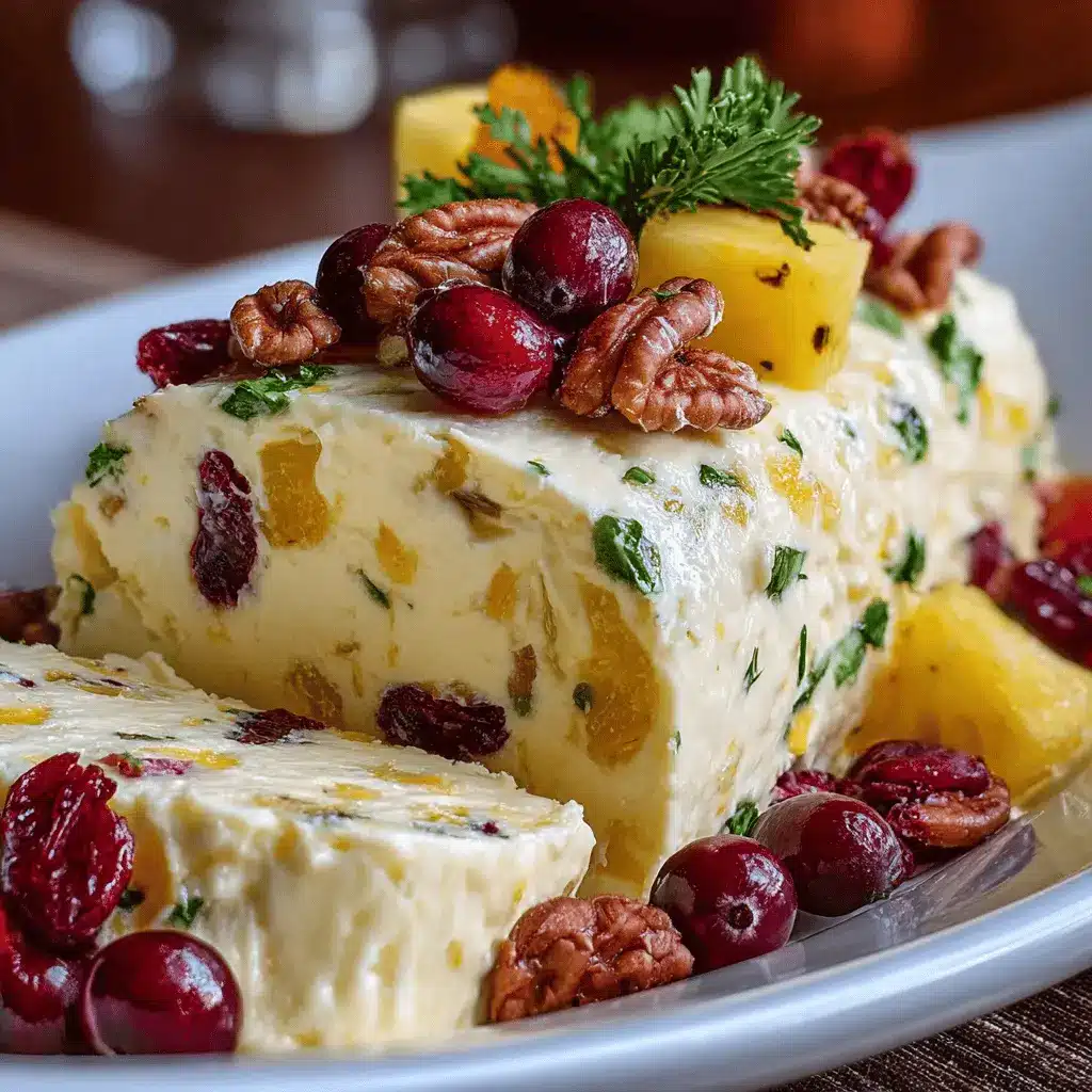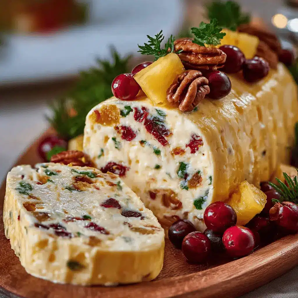 Tronco de queso navideño: festín dulce con piña y arándanos