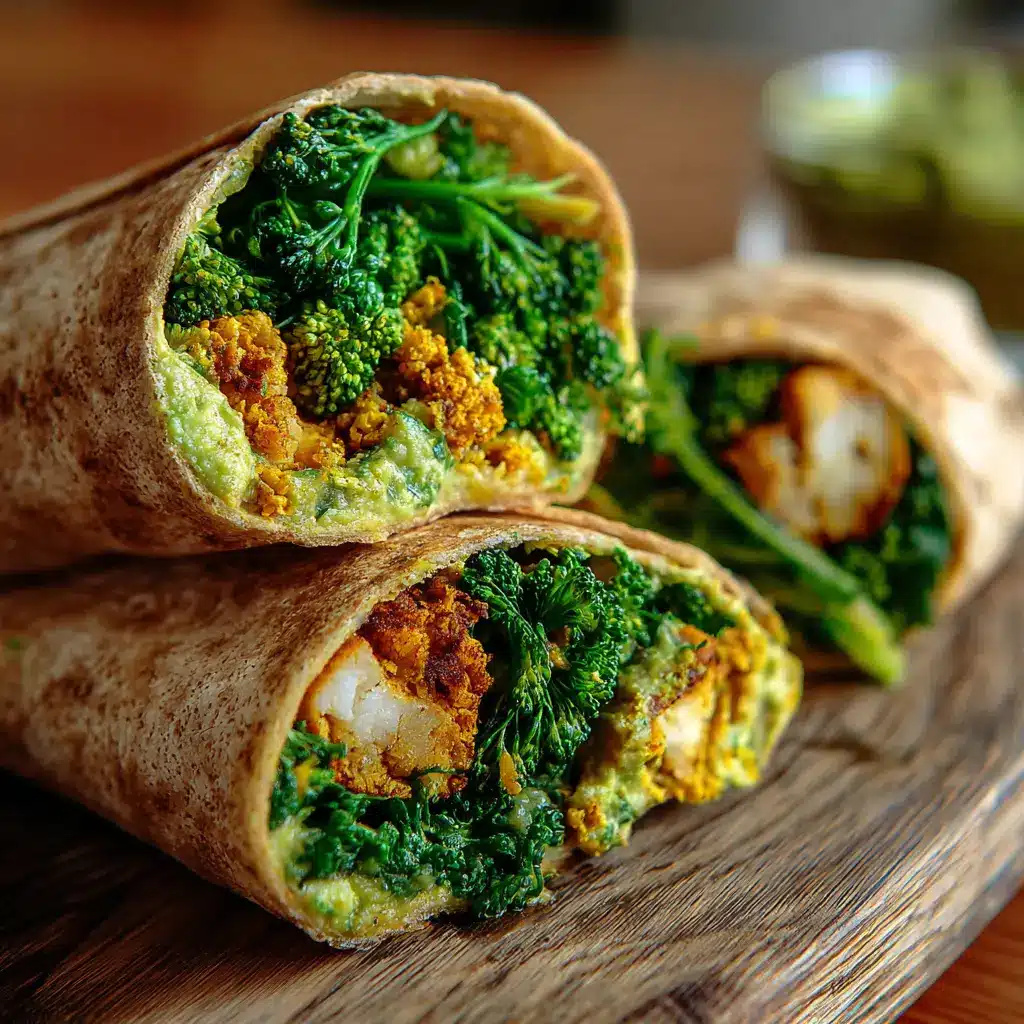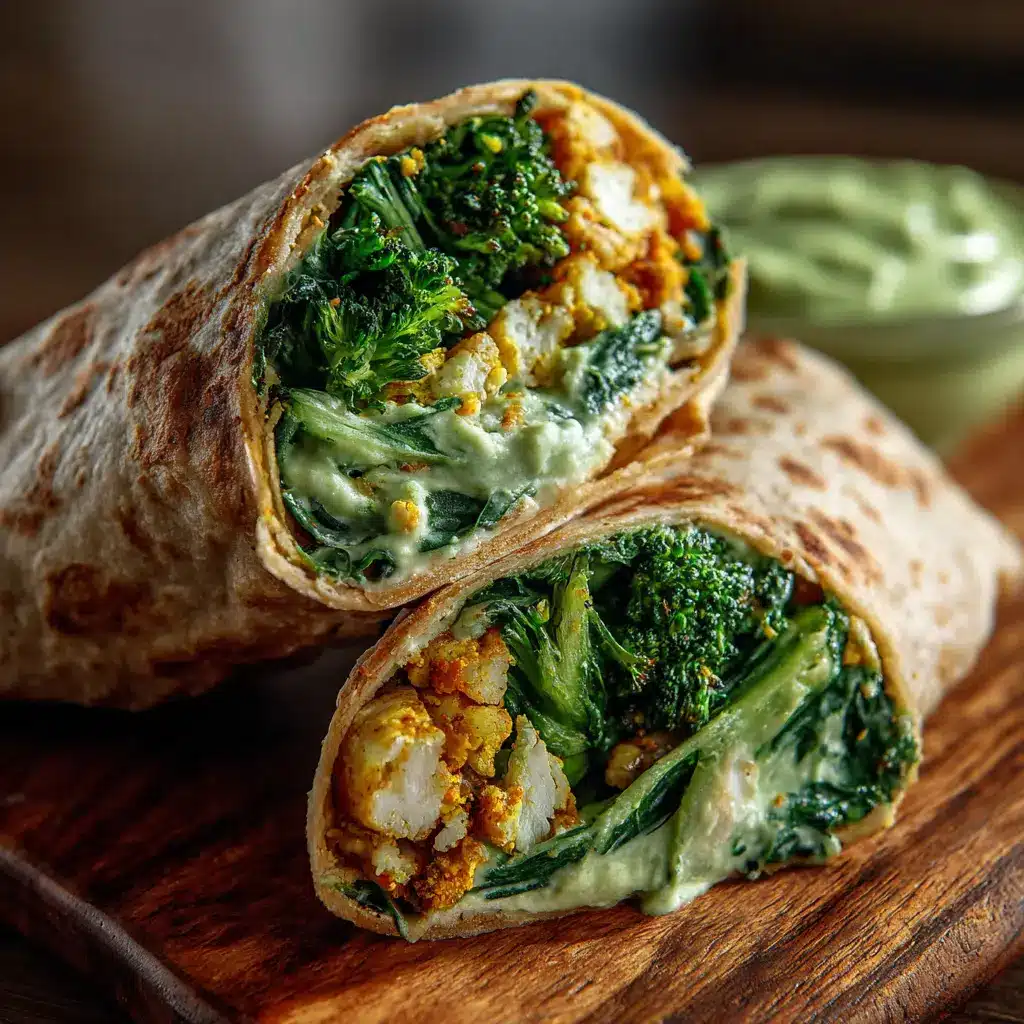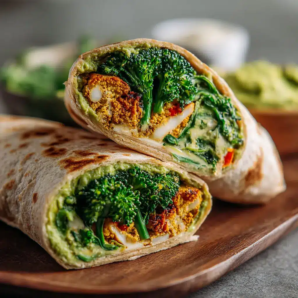 Un wrap saludable y sabroso hecho con soja texturizada, brócoli fresco y hummus de espinaca. Perfecto para un almuerzo ligero o una cena rápida.
