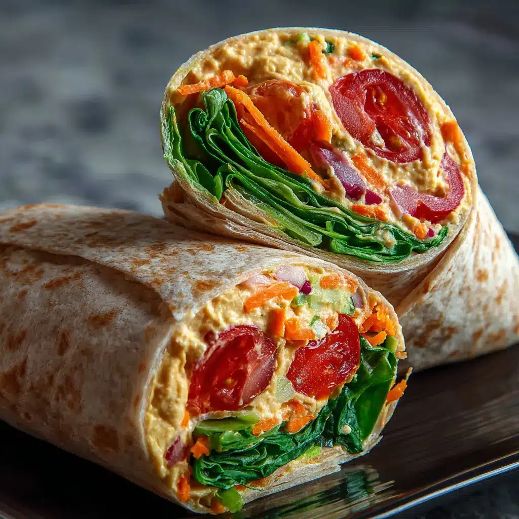 - Emplatado creativo: Corta el wrap en mitades o cuartos y colócalos sobre un plato blanco, lo que hace que los colores resalten.