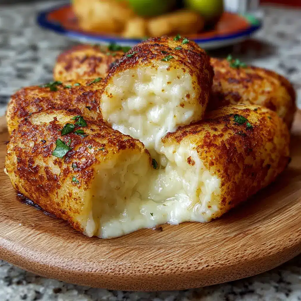 La yuca rellena con queso debe tener una corteza dorada que contrastará maravillosamente con el interior suave.